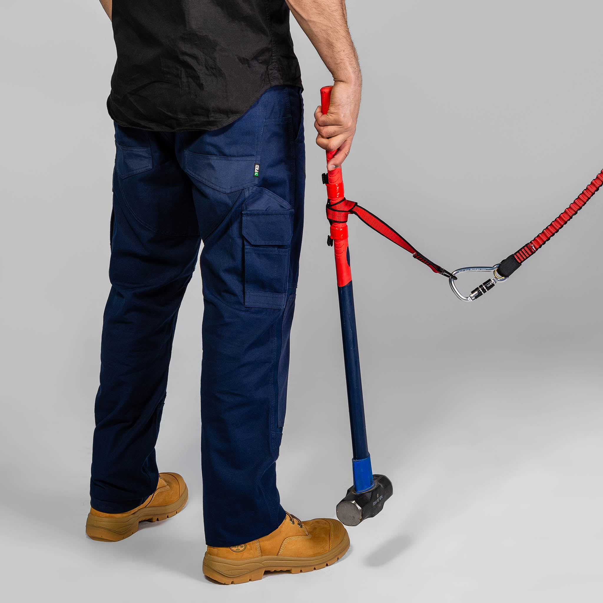 The Bungee Tool Lanyard with self-locking karabiner is manufactured from heavy duty elasticized webbing and includes a dual locking karabiner for maximum safety