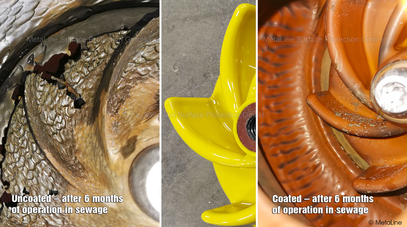 Once applied, the coating forms a flexible protective barrier that shields the impeller surface from erosion and cavitation.